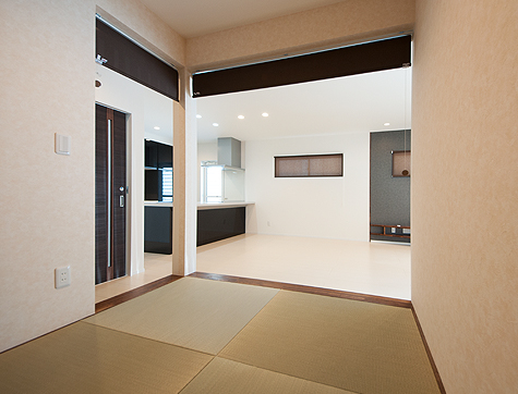 ちょっと腰かけてテレビを見たりうたた寝をしたりと丁度良い小上がりの和室。ロールスクリーンで仕切れるので急な来客があっても安心です。