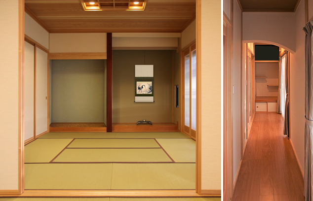 8帖と8帖の二間の和室。依然とお同じ間取りでそのままに縁側を追加しました。職人の手作りの和室にピッタリな飾り照明と床の間で上品な和室となりました。AFTER